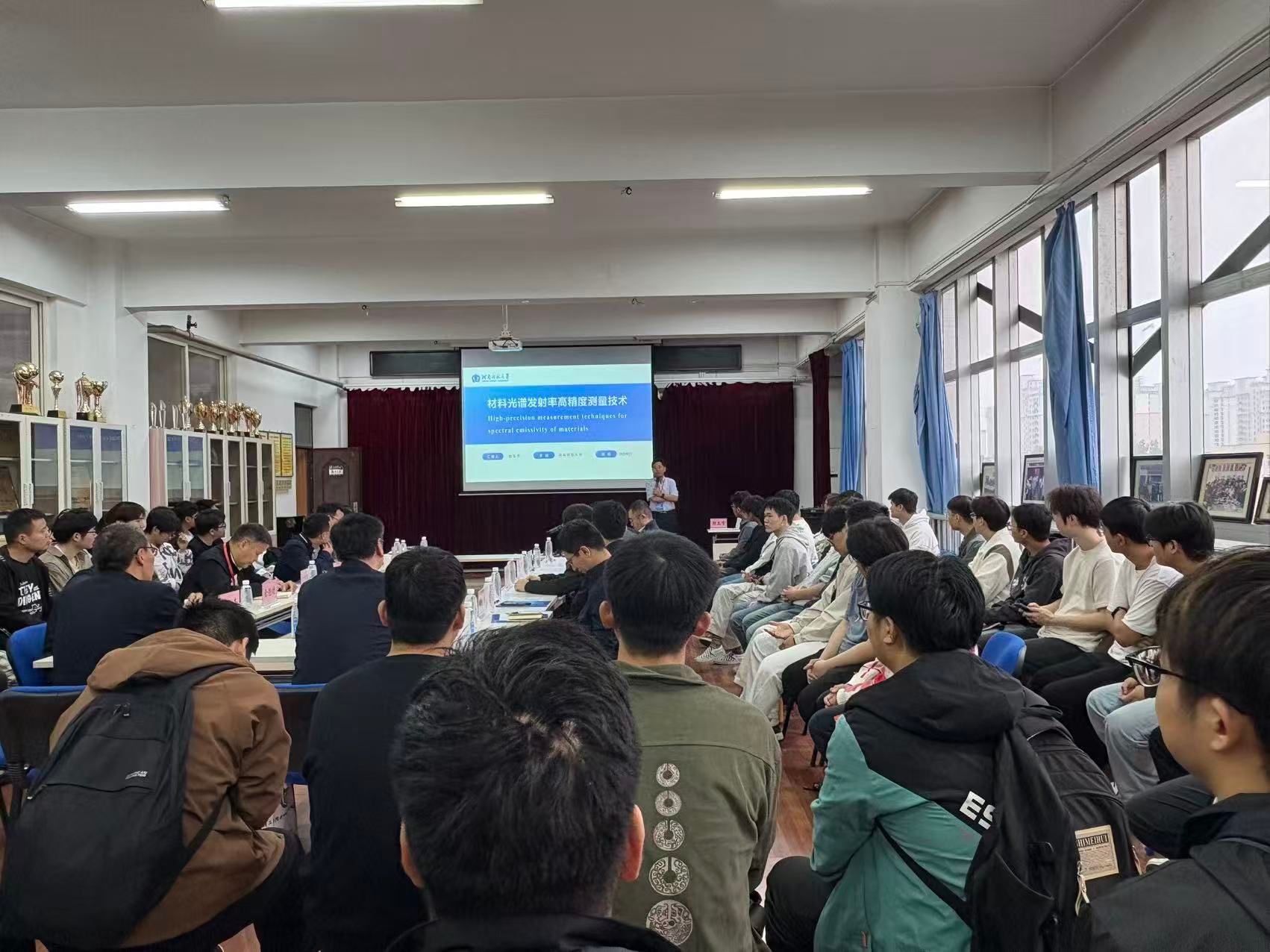 值我校建校70周年之际,2025年9月27日上午,应我校科技处、伟德国际victor1946和先进材料研究中心邀请,河南师范大学二级教授、博士生导师、中原学者、国务院政府特殊津贴获得者、北京理工大学兼职教授、河南师范大学学术委员会副主任刘玉芳教授和郑州大学博士生导师、国家级青年科技人才、郑州大学化学国家级实验教学示范中心主任、中国化学会竞赛工作委员会委员、河南省化学会理事李恺教授在2号实验楼543会议室分别作了题为“材料光谱发射率高精度测量技术”、“币金属团簇基闪烁体材料的开发与应用”的专题学术报告。报告会由伟德国际victor1946院长、先进材料研究中心主任焦明立主持,伟德国际victor1946、先进材料研究中心、物理与光电工程学院、纺织服装产业研究院等院部的相关学科教师和研究生及航空港投资集团产业研究院、北京合众思壮科技股份有限公司、河南东微电子材料有限公司等企业代表近130人参加了报告会。