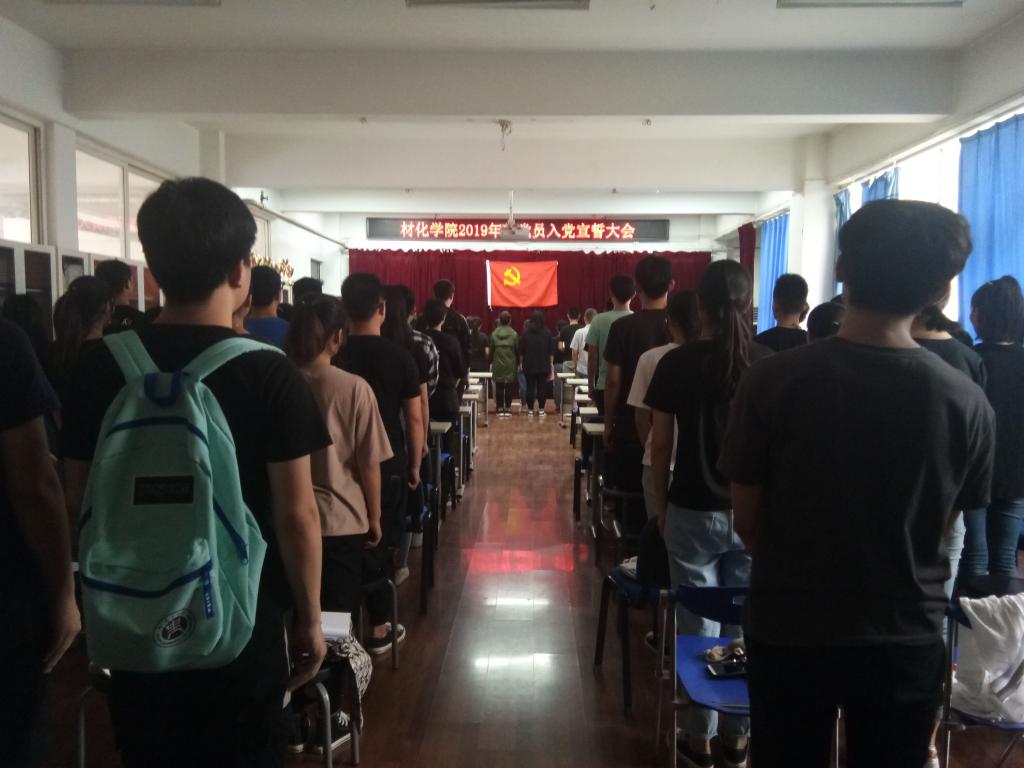 2019年6月3日,材料与化工学院在二号实验楼543举行了庄严而肃穆的新党员入党宣誓活动。会议由材料与化工学院党委书记杨佩主持,各学生党支部书记及全体学生党员参加。