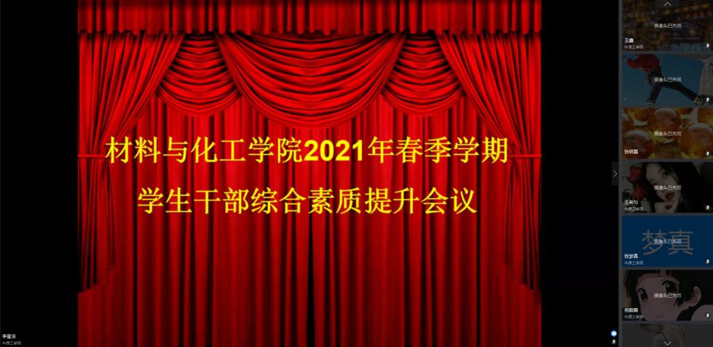 为确保学生返校有关要求落到实处,进一步发挥学生党员干部模范带头作用,3月9日下午,材料与化工学院召开了返校动员及学生党员干部培训专题线上会议。学院党委副书记周华强老师、学工办主任兼18级辅导员邢军阳老师、团总支副书记兼20级辅导员李福华老师及全体学生党员干部参加了此次会议,大会由李福华老师主持。