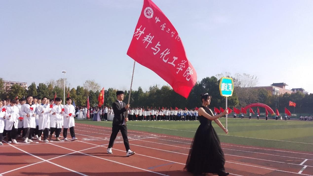 开幕式上,我院方阵充满活力和阳光,铿锵的脚步带着青春的激情,飒爽的英姿展现着年轻的自信,嘹亮的口号彰显着材化学子拼搏奋斗的精神。