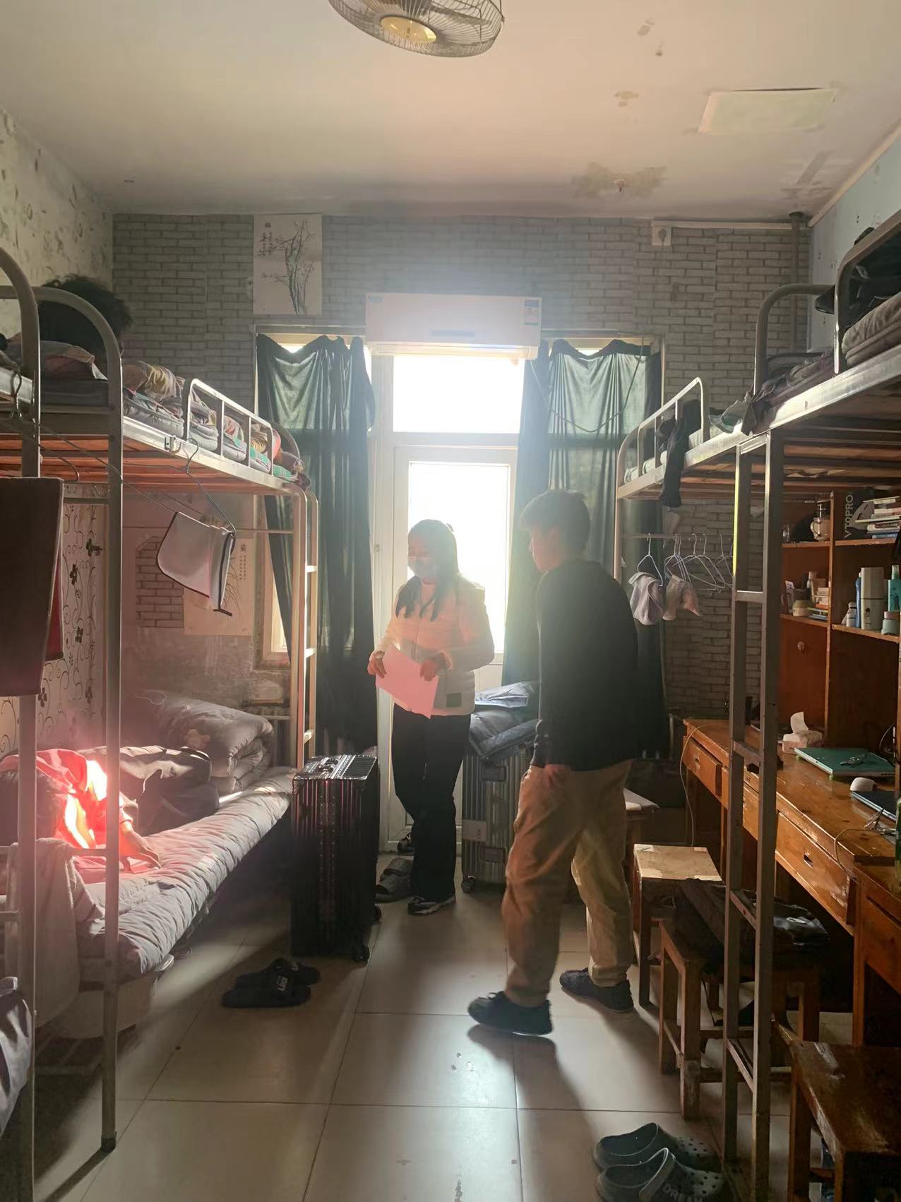 检查过程中,老师们强调了宿舍卫生问题,提醒同学们要勤打扫卫生,摆放好个人物品,做好宿舍卫生工作,并叮嘱同学们近期是感冒和流感的多发期,同学们应该增强防护意识,到人群密集的地方需戴好口罩,做好防范措施,宿舍勤开窗通风,做好消杀工作,以此来预防病毒在宿舍流行传染,预防流行性疾病的传播。此外,老师们在检查过程中还提醒同学们要关注气候的变化,大雪已到,气温会发生骤降,提醒同学们要注意保暖,根据气候的变化及时调整自己的衣着,注意防寒保暖。最后,大家还进一步了解了同学们日常生活中产生的问题,并对同学们的疑惑进行了逐一解答,为同学们排忧解难。