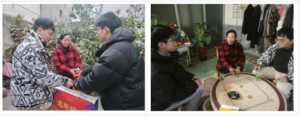 为进一步提升学院资助育人工作服务水平,筑牢家校沟通合作平台,精准掌握学生成长环境,形成有效的家校育人合力,为学生的成长与发展提供指导与帮助,在寒假期间,材料与化工学院学生志愿者先后赴我省南阳、商丘等地开展2024年寒假向家庭经济困难学生“冬季送温度”活动,为家长解读国家和学校的资助政策,为家庭送去学院的慰问和祝福。