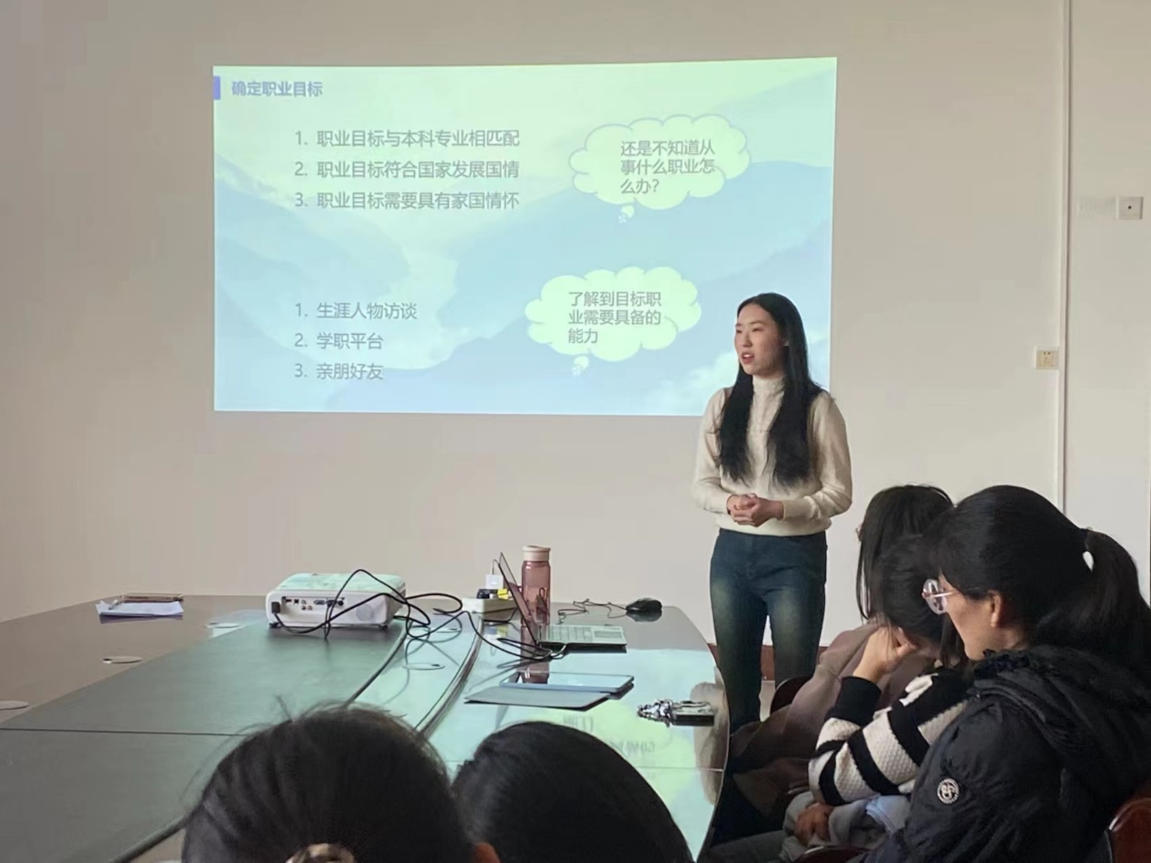 随后,首届全国大学生职业规划大赛河南省总决赛铜奖获得者、材料与化工学院高可心分享了自己的大赛成长历程,并为同学们提出几点建议:一是要树立信心,信心是任何成功的关键,要学会重新认识自我、不断自我肯定。二是要确定职业目标,目标需与国家战略、所学专业紧密结合,职业选取要体现家国情怀。三是要与职业目标匹配,合理规划个人道路,擅于寻求外界帮助。她最后提到,比赛是一个认识自己、创造自己、成就自己的过程,要敢于自我突破,自我挑战,相信通过大赛能使同学们对职业规划有更加清晰的认知。