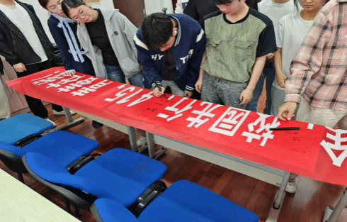 随后,同学们依次来到“国家安全,校园先行,415,青春在线”横幅前,一笔一划签下自己的名字,许下庄重的承诺。一个个名字汇聚在一起,展现出同学们捍卫国家安全的坚定意志,彰显出新时代青年的责任担当。