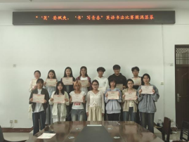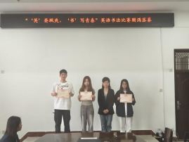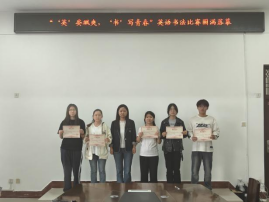 随后,李巧丽宣读获奖名单,现场气氛推向高潮,通过网上投票和专家评审,本次比赛共评出一等奖3名、二等奖5名、三等奖8名、优秀奖13名,涵盖不同年级与专业。获奖作品或遒劲有力,或飘逸洒脱,一篇篇字词排列整齐、书写生动的英语文章跃然纸上。获奖者依次上台领奖,在场同学为获奖者送上真挚而又热烈的掌声。