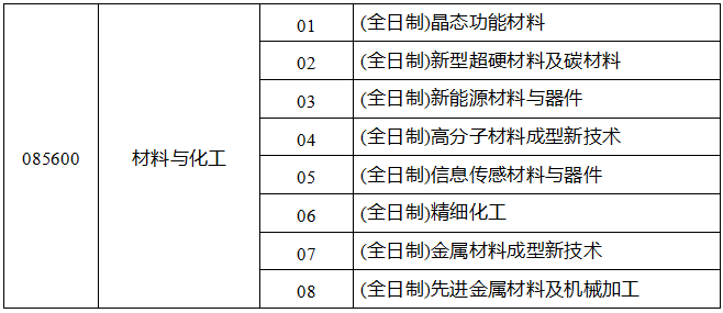 2. 085600 材料与化工 专业学位硕士(8个研究方向)