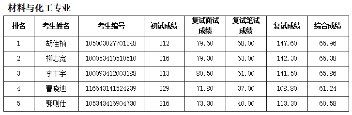按照学校研究生招生工作安排,材料与化工学院2023年硕士研究生复试工作(第四批调剂考生)于4月19日进行,根据复试情况,现对考生综合成绩进行公示: