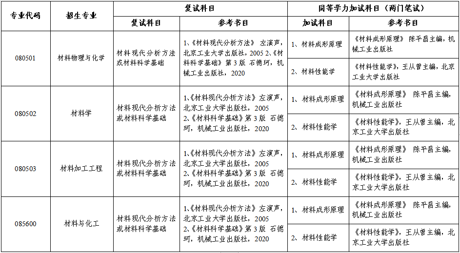 2、专业课考试:时间3个小时,满分100分。考试成绩计入复试总成绩。材料与化工学院2024年硕士研究生招生复试(加试)范围及参考书目如下表: