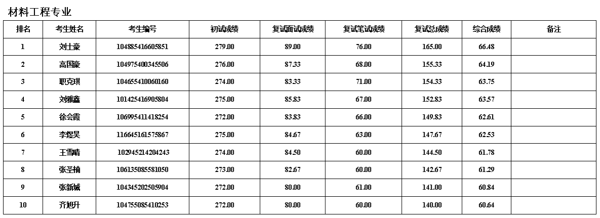 按照研究生招生工作安排,我院于4月14日进行了六批调剂复试,现对考生综合成绩进行公示: