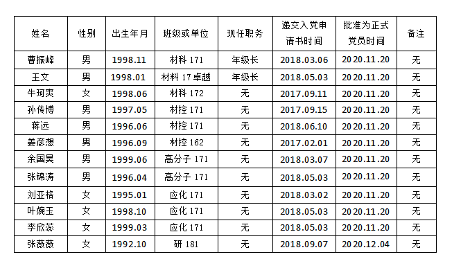为了加强对发展党员工作的民主监督,确保党员的质量,现将预备党员曹振峰等同志的有关情况公示如下: