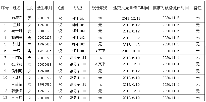 为了加强对发展党员工作的民主监督,确保党员发展质量,现将我院2021年下半年预备党员石增光等同志有关情况公示如下: