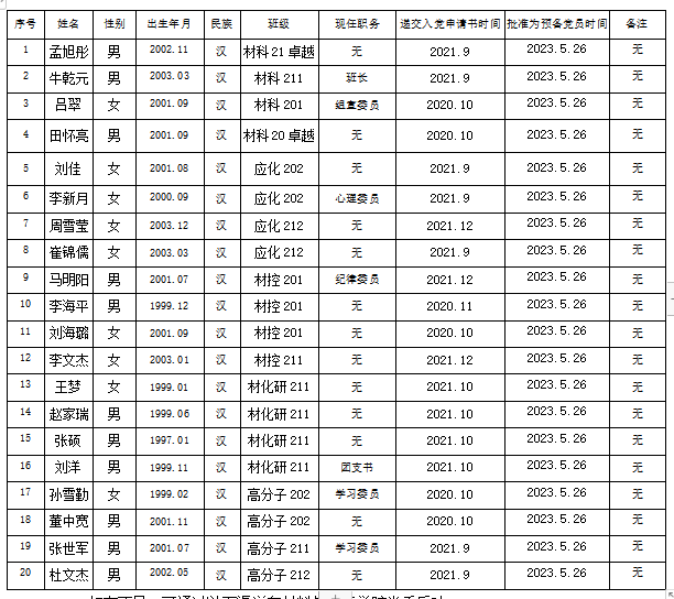 为了加强对发展党员工作的民主监督,确保党员发展质量,现将我院2024年上半年预备党员孟旭彤等同志有关情况公示如下: