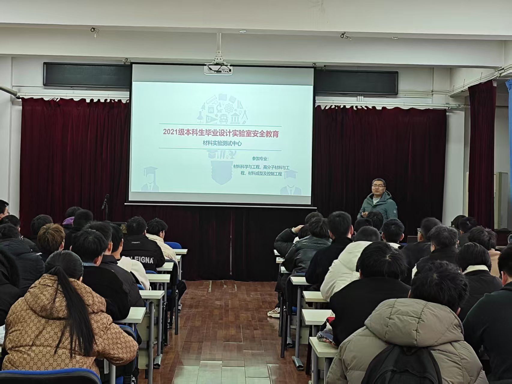 为确保2021级本科生安全顺利完成毕业设计,3月4日下午,材料实验测试中心在2号实验楼543会议室举行毕业设计实验室安全教育培训。培训会由材料实验测试中心主任朱根兴老师主持,材料实验测试中心全体老师,以及高分子材料与工程、材料科学与工程和材料成型及控制工程三个专业的近200名2021级本科生参加了本次培训会。