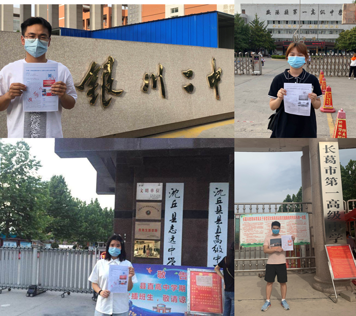为提高学校和专业知名度,吸引更多优秀生源进入学院和专业学习,2020年6月,材料科学与工程专业组织部分在校生在疫情有所缓解期间,分别赴银川市第二中学、安阳县第一高级中学、沈丘县志远中学、长葛市第一高级中学,发放《伟德国际victor1946材料科学与工程专业招生宣传手册》,宣传本学院和专业的招生政策、人才培养特色、师资力量、培养目标、毕业要求和就业等情况,并现场解答学弟学妹们的疑问。