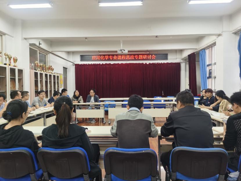 2021年9月28日下午,“省级优秀基层教学组织”应用化学系在校2号实验楼543会议室举办“课程思政”专题研讨会。国资处、实验室管理中心副处长张留学、组织部副部长赵茜、教务处副处长赵尧敏、马克思主义学院教授陈锦晓应邀参加。研讨会由学院党委书记李长林主持。