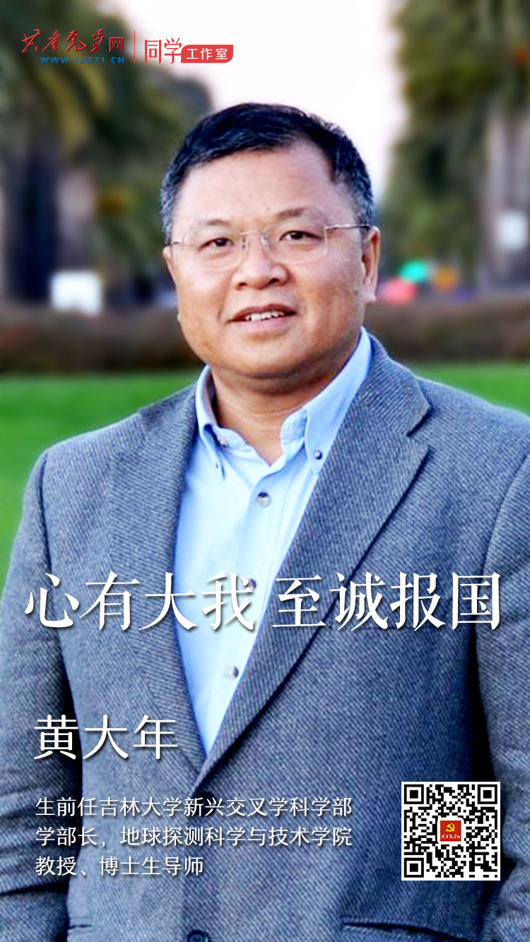 黄大年,男,广西南宁市人,1958年8月生,汉族。2009年12月,黄大年放弃了在英国优厚的待遇,怀着一腔爱国热情返回祖国,出任吉林大学地球探测科学与技术学院教授。八年时间,他带领团队在航空地球物理领域取得一系列成就。2017年1月8日,黄大年因病逝世,享年58岁。