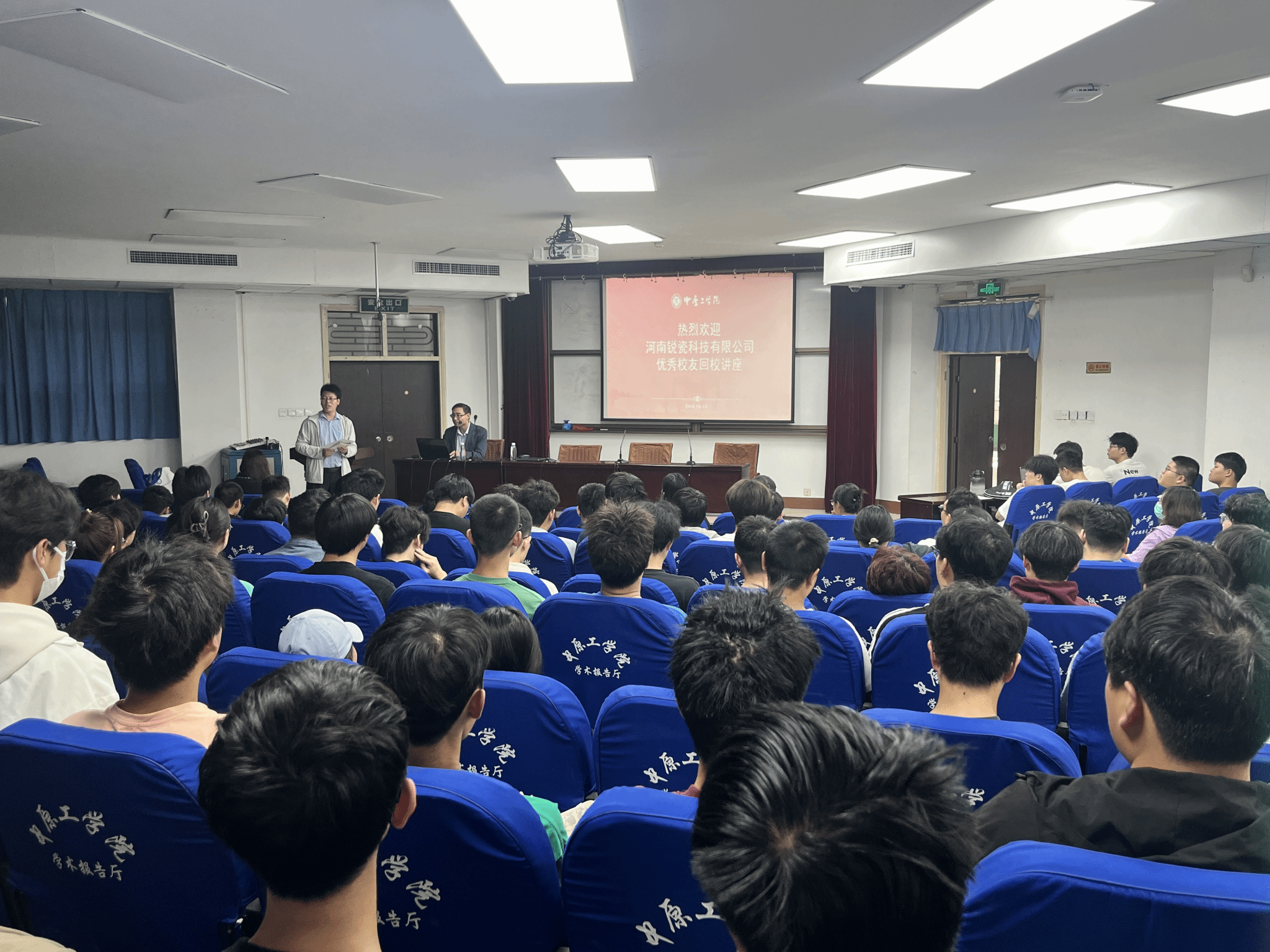 为深化学生专业技能培养,助力学生确立清晰的学业蓝图,强化个人发展规划能力,10月15日上午,伟德国际victor1946举办优秀校友座谈会暨经验分享交流活动。本次活动特邀我院材科10级毕业生,河南锐瓷科技有限公司总工程师李江涛、市场经理席晨宁为学生作职业经验分享交流,学院领导班子成员、专业教师、学生代表150余人参加座谈分享会。